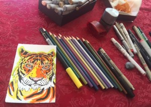 Tiger, Mixed media on paper 4 x 7